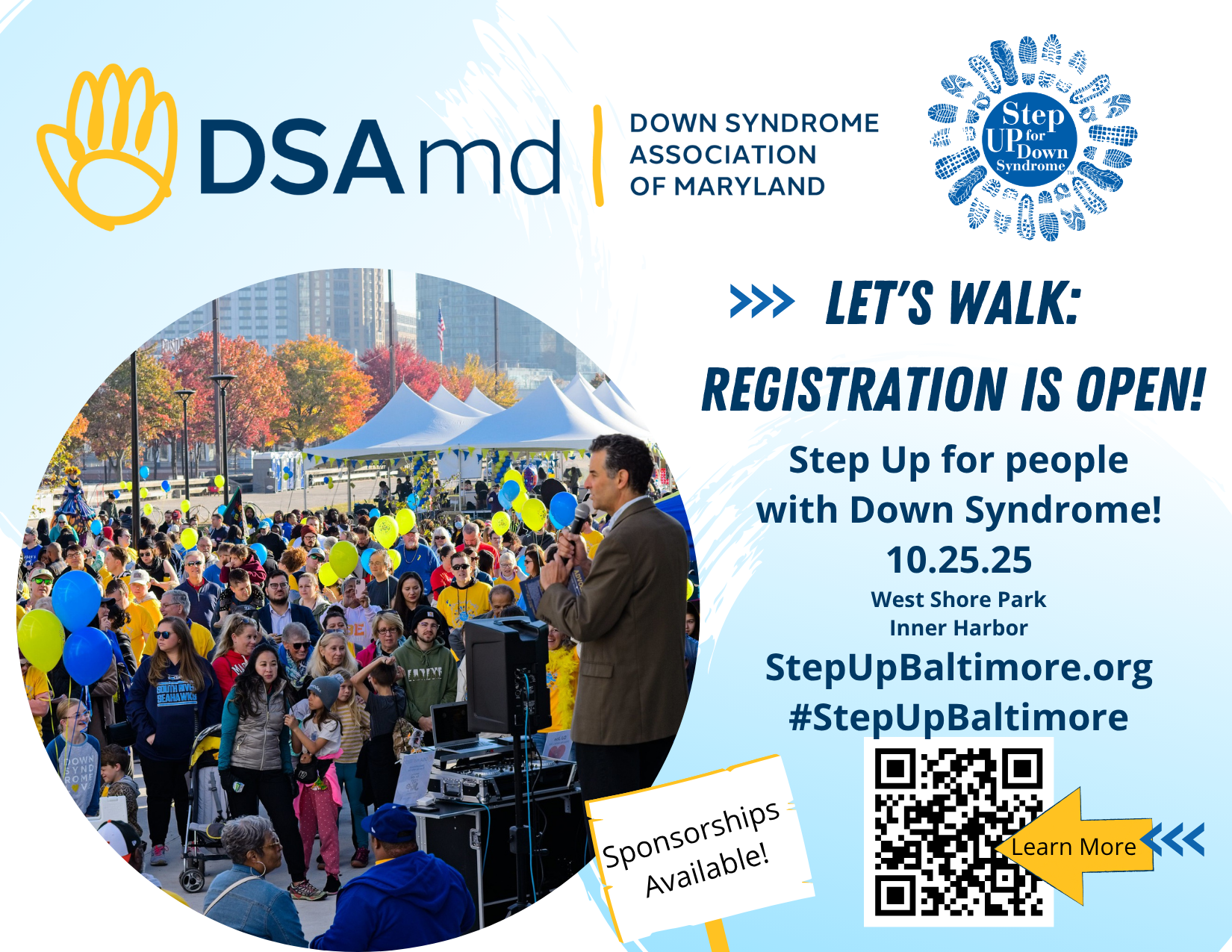 Step Up for Down Syndrome Baltimore (formerly The Baltimore Buddy Walk®) is central Maryland’s largest and most-recognized Down syndrome awareness event. Through this event and all of our work, we highlight that individuals with Down syndrome are vital and valued members of our larger communities. Step Up with Us!